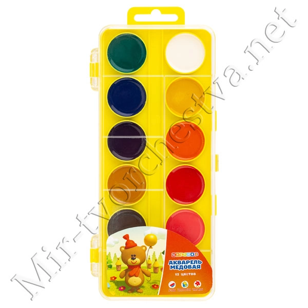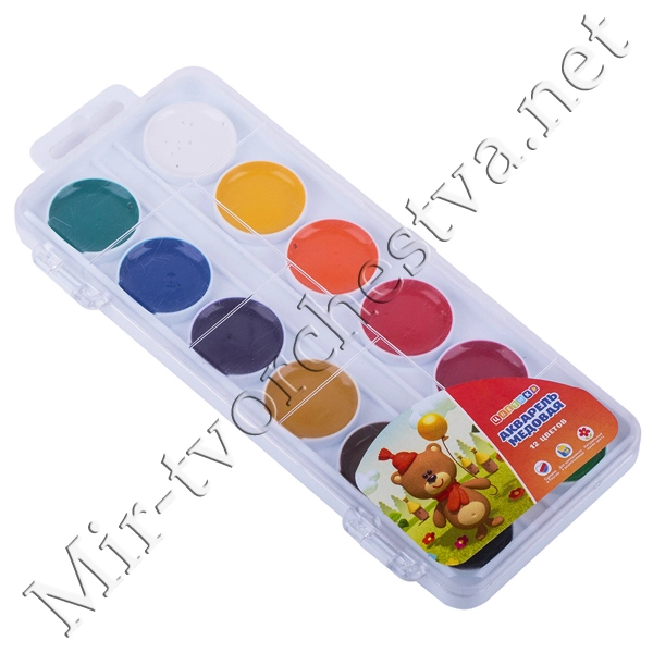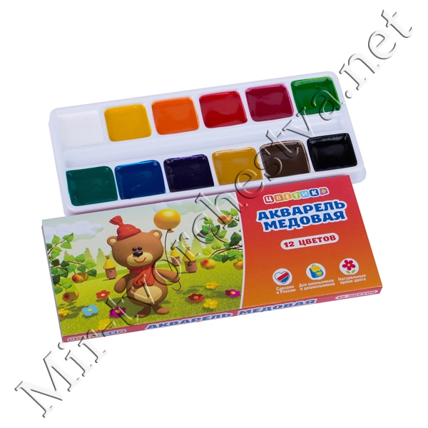 Набор акварели Медовой, картонная упаковка, 12 цветов, Цветик