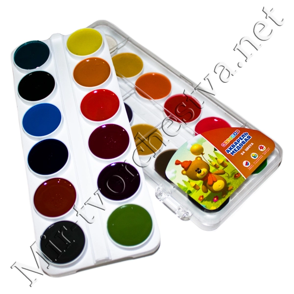 Набор акварель, пластиковая упаковка Белая с петлей, 24 цвета, Цветик