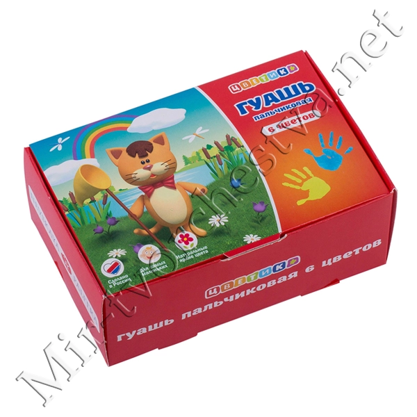 Набор гуашевых красок, пальчиковая, 6цв., 40мл, Цветик