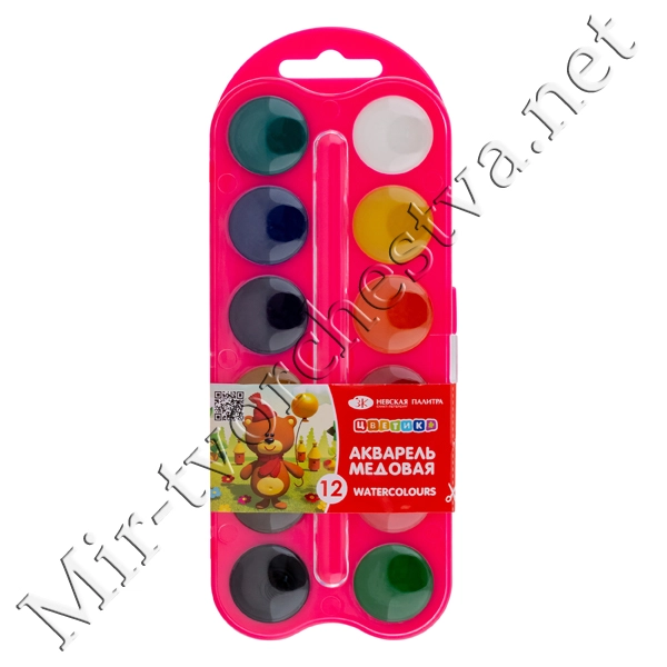 Набор акварели Медовой, пластиковая упаковка, 12 цветов, Цветик