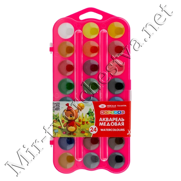 Набор акварель, пластиковая упаковка Розовая с петлей, 24 цвета, Цветик