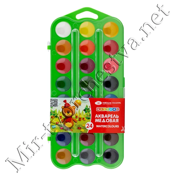 Набор акварель, пластиковая упаковка Зелёная с петлей, 24 цвета, Цветик