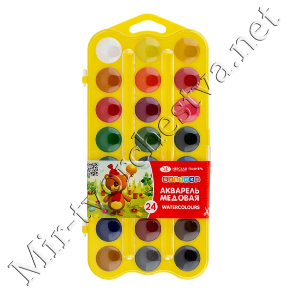 Набор акварель, пластиковая упаковка Жёлтая с петлей, 24 цвета, Цветик