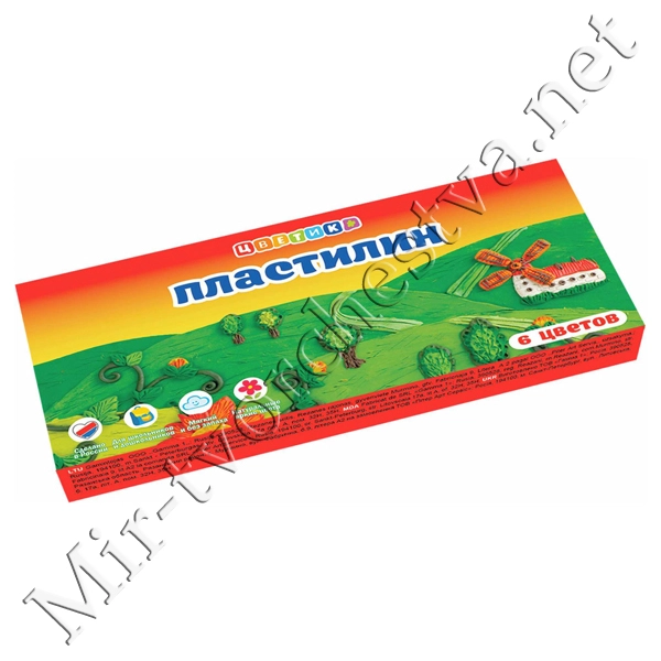 Набор пластилина со стеком, 6 цветов, 90г, Цветик