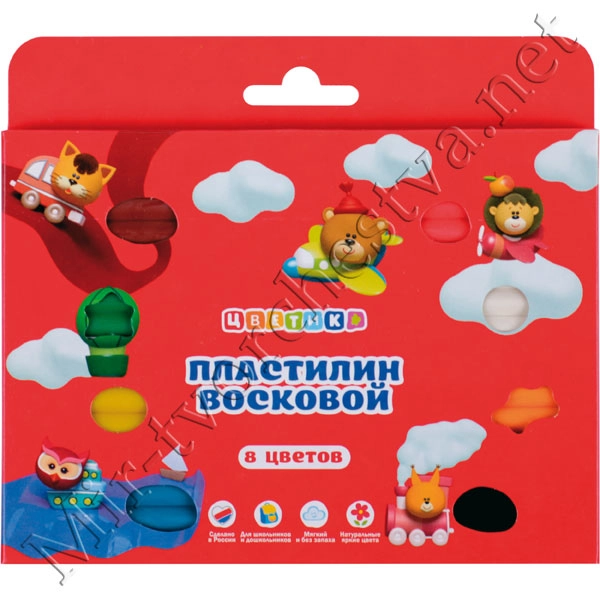 Набор пластилина воскового со стеком, 8 цветов, 120г, Цветик