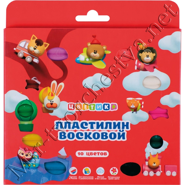 Набор пластилина воскового со стеком, 10 цветов, 150г, Цветик