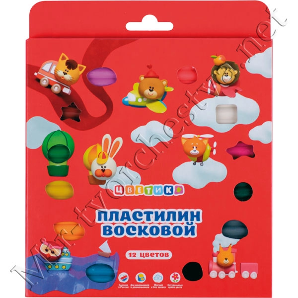 Набор пластилина воскового со стеком, 12 цветов, 180г, Цветик