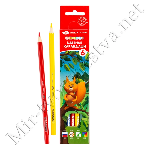 Набор цветных карандашей, 6 цветов, шестигранные, 2М-4М, заточенные, Цветик