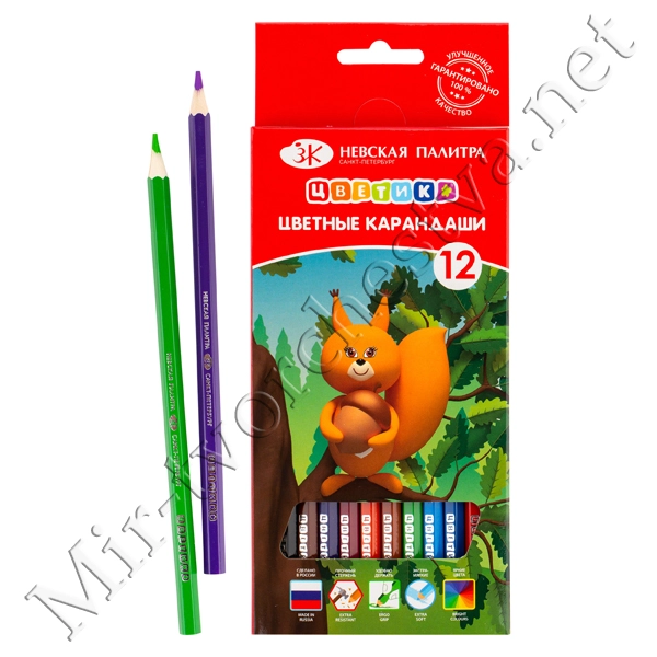 Набор цветных карандашей, 12 цветов, шестигранные, 2М-4М, заточенные, Цветик