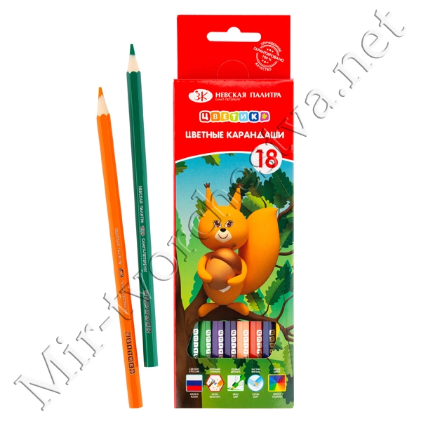 Набор цветных карандашей, 18 цветов, шестигранные, 2М-4М, заточенные, Цветик