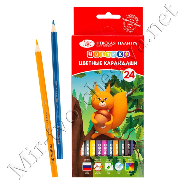 Набор цветных карандашей, 24 цвета, шестигранные, 2М-4М, заточенные, Цветик
