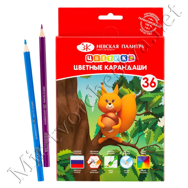 Набор цветных карандашей, 36 цветов, шестигранные, 2М-4М, заточенные, Цветик