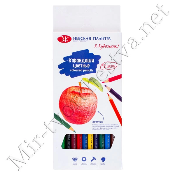 Набор цветных шестигранных карандашей, 12 цветов, в картонной коробке, Я-Художник!
