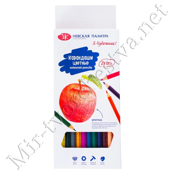 Набор цветных шестигранных карандашей, 24 цвета, в картонной коробке, Я-Художник!