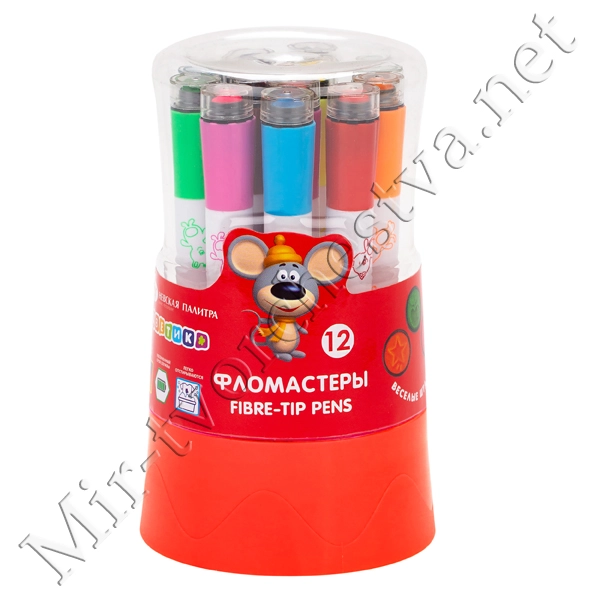 Фломастеры со штампом,12 цветов, пластиковый пенал, Цветик