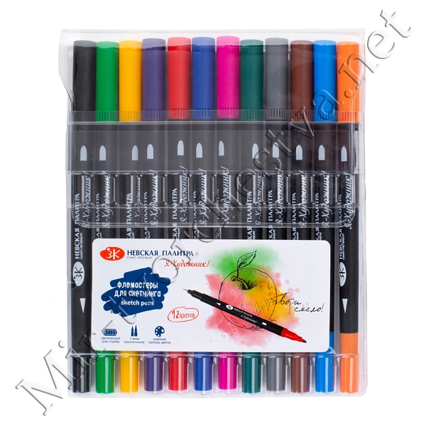 Фломастеры для скетчинга двусторонние, 12 цветов, Я-Художник!