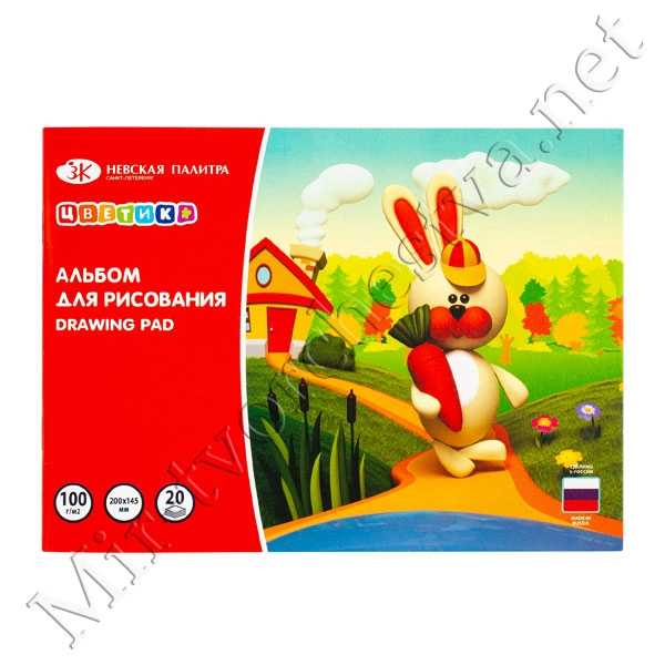 Альбом на скрепке для рисования 205 х145 мм, 100г/м2 ,20 л, плотность обложки 180г/м2, Цветик