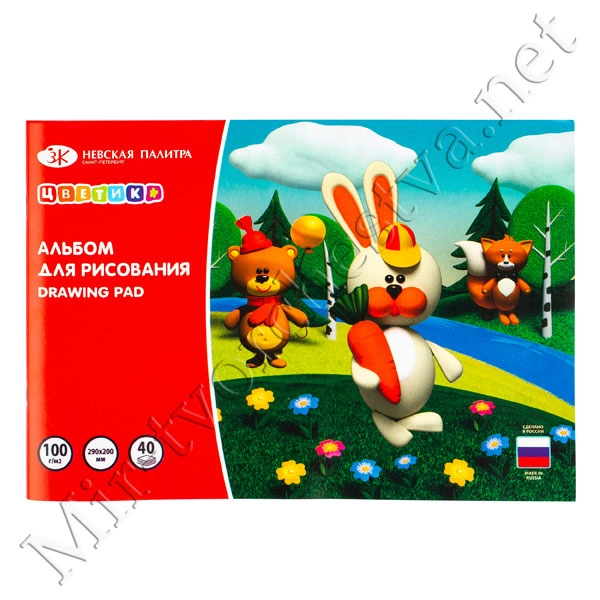 Альбом на скрепке для рисования, 290x200 мм, плотность 100г/м2, 40л, плотность обложки 180г/м2, Цветик