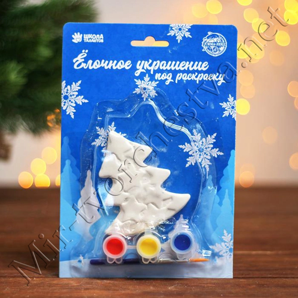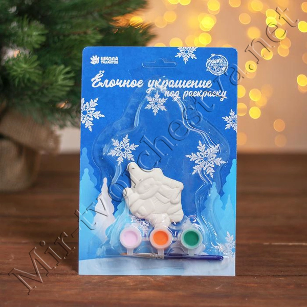 Ёлочное украшение под раскраску «Снеговик с ёлкой» с подвесом, краска 3 цв по 2,5 мл, кисть, уценка