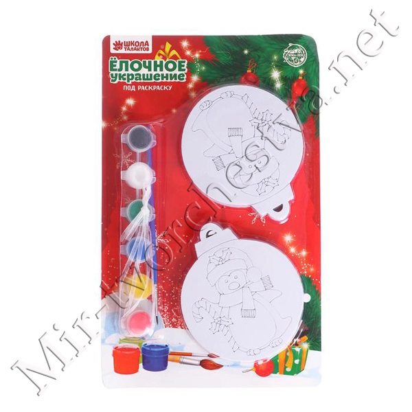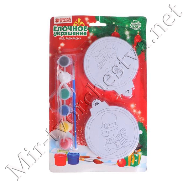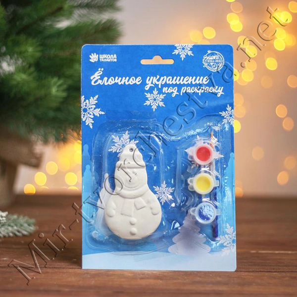 Ёлочное украшение под раскраску «Снеговик» с подвесом, краска 3 цв по 2,5 мл, кисть, уценка