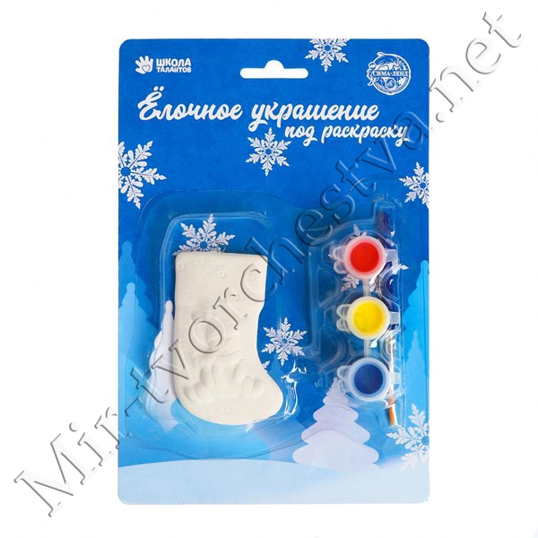 Ёлочное украшение под раскраску «Носочек» с подвесом, краска 3 цв по 2,5 мл, кисть