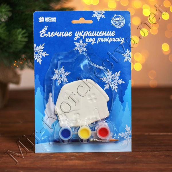 Ёлочное украшение под раскраску «Хата» с подвесом, краска 3 цв по 2,5 мл, кисть, уценка