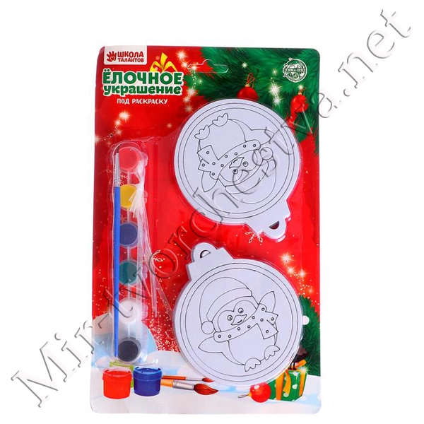 Елочное украшение под раскраску "Милашка" размер 10*12*0,5 см 4 шт, краски 6цв по 2мл, кисть