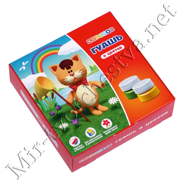 Набор гуашевых красок, Цветик, 9цв., 20мл