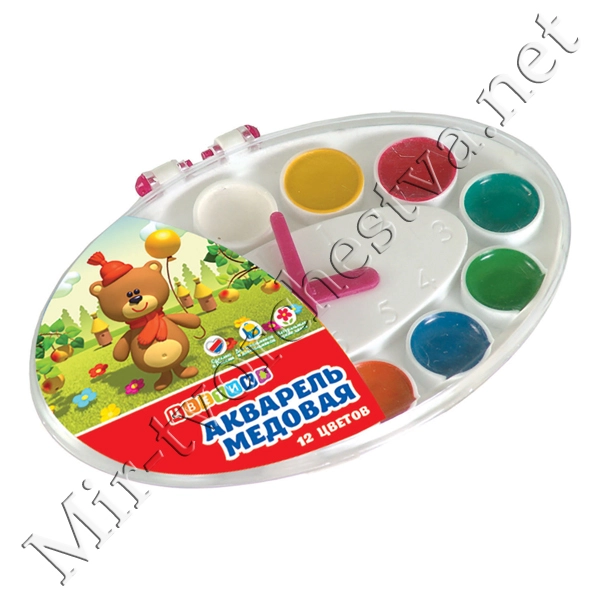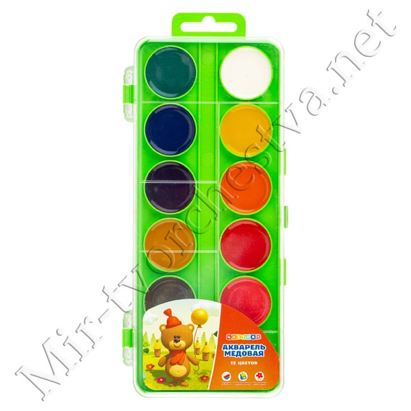 Набор акварели Медовой, картонная упаковка, 12 цветов, Цветик
