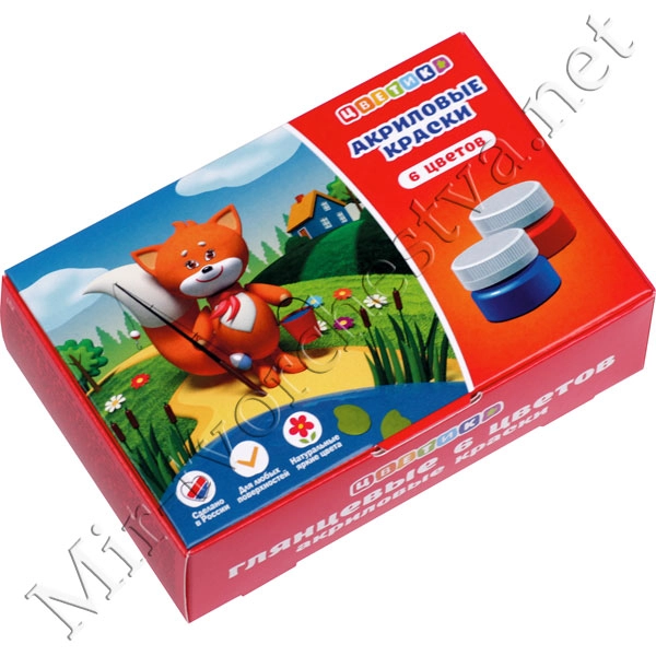 Набор акварели Медовой, картонная упаковка, 6 цветов, Цветик
