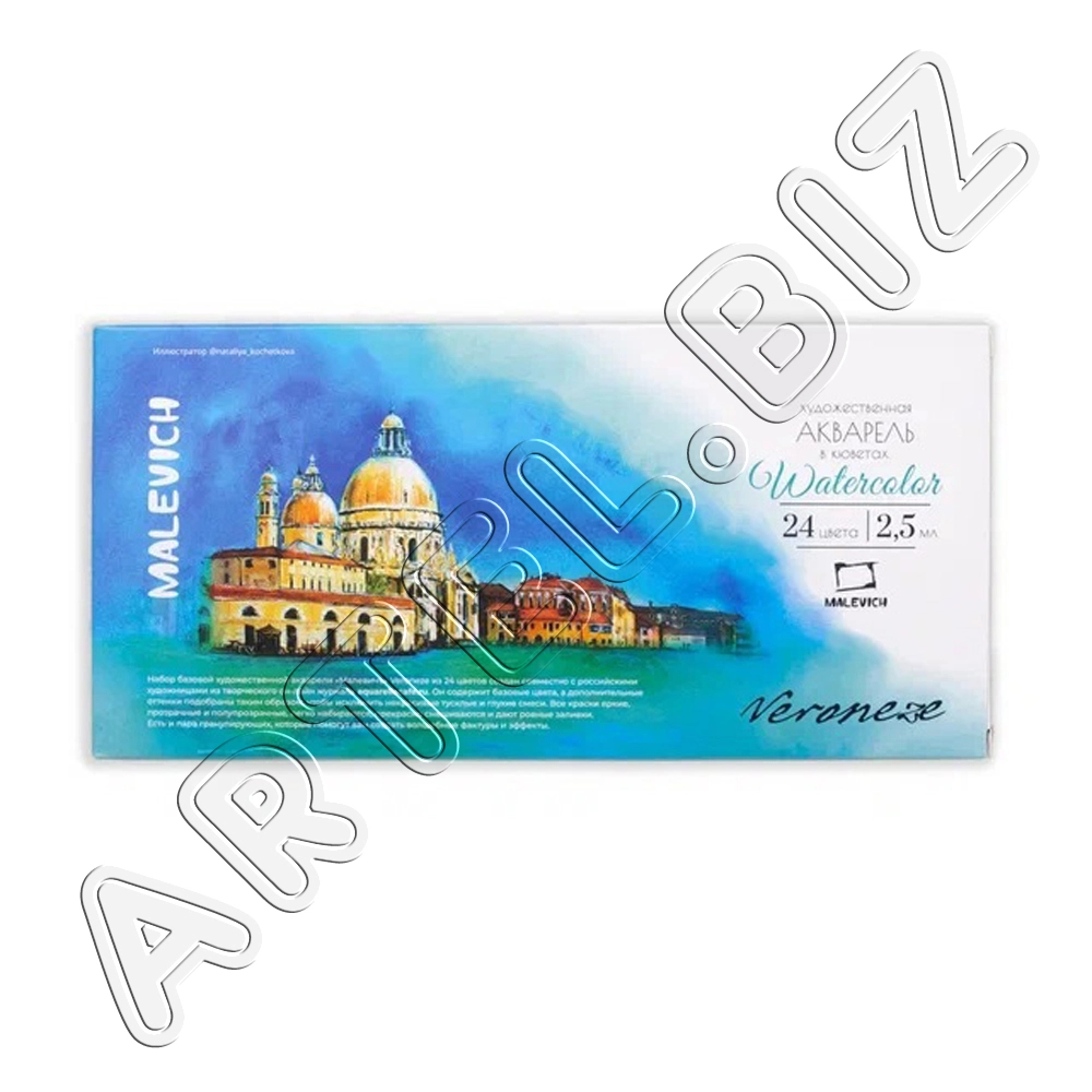 Набор акварели Veroneze кюветы 2,5 мл, 24 цв., Малевичъ