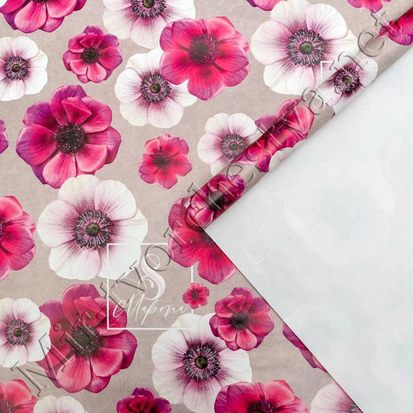 Бумага упаковочная крафтовая, 50x70см, «Цветы на сером»
