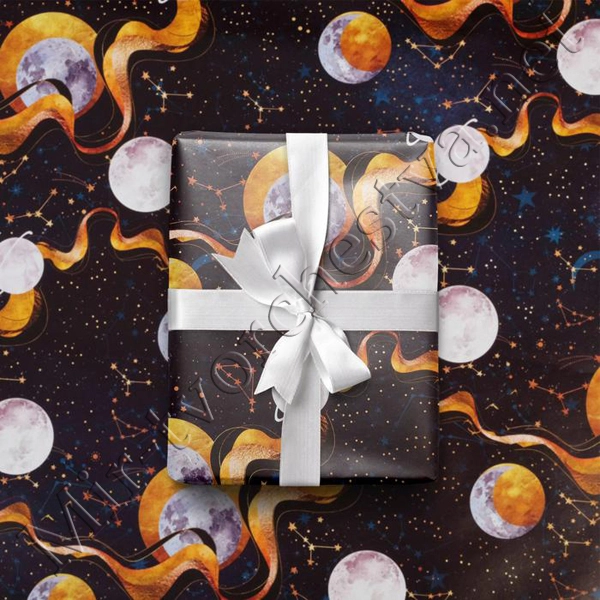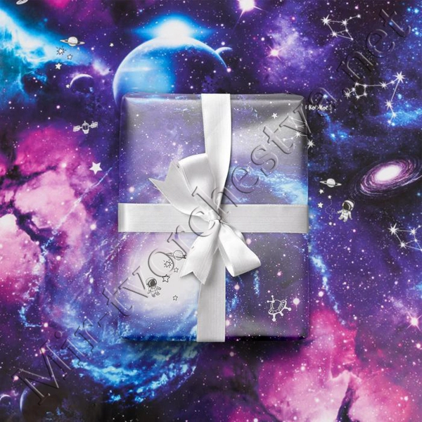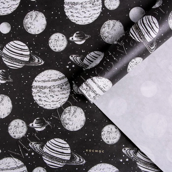 Бумага упаковочная глянцевая, 70x100см, «Космическая»