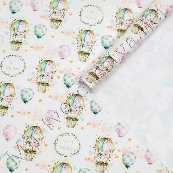 Бумага упаковочная глянцевая, 70x100см, «Воздушные шары»