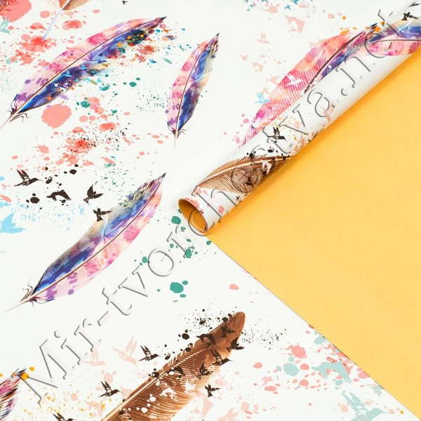 Бумага упаковочная глянцевая двусторонняя, 70x100см, «Перья», рисунок