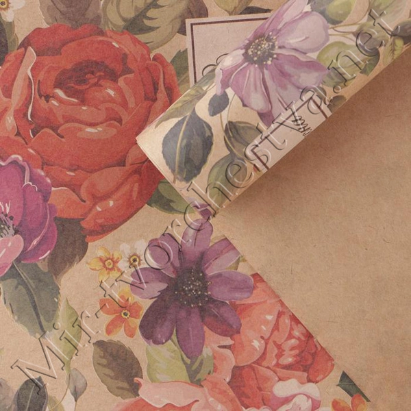 Бумага упаковочная крафтовая, 50x70см, «Цветы»