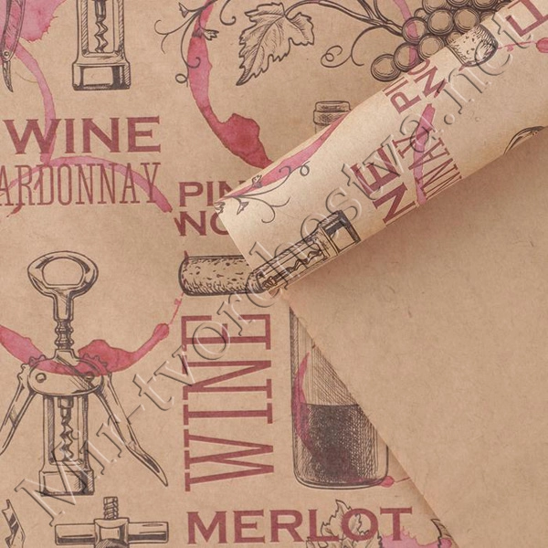 Бумага упаковочная крафтовая, 50x70см, «Wine»
