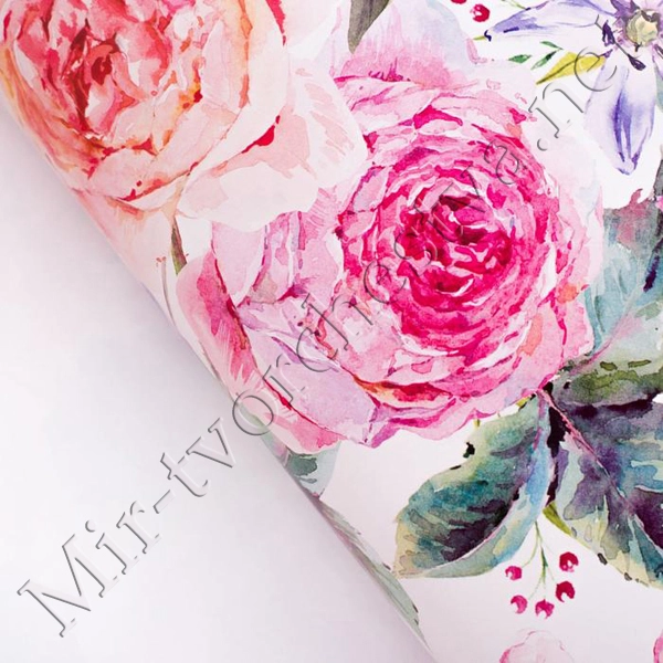Бумага упаковочная глянцевая, 70x100см, «Акварельные цветы»