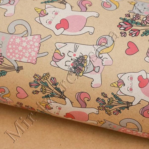Бумага упаковочная глянцевая двусторонняя, 70x100см, «Единороги»
