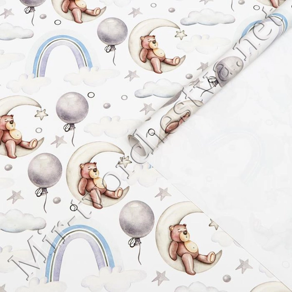 Бумага упаковочная глянцевая, 70x100см, «Мишка на луне»