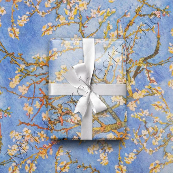 Бумага упаковочная глянцевая, 70x100см, «Цветущие ветки миндаля»
