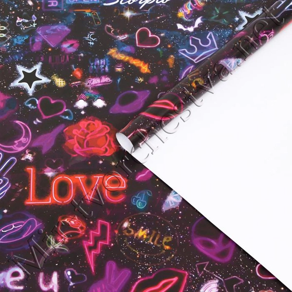 Бумага упаковочная глянцевая, 50x70см, «Неоновая любовь»