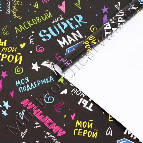 Бумага упаковочная глянцевая, 50x70см, «Ты герой»