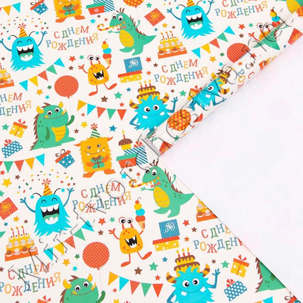 Бумага упаковочная глянцевая, 70x100см, «С днем рождения!»