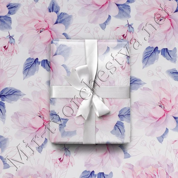 Бумага упаковочная глянцевая, 50x70см, «Нежные цветы»