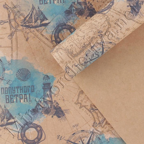 Бумага упаковочная крафтовая, 50x70см, «Морская»