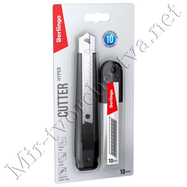 Нож канцелярский, 18мм, + лезвия 10шт., Berlingo Hyper