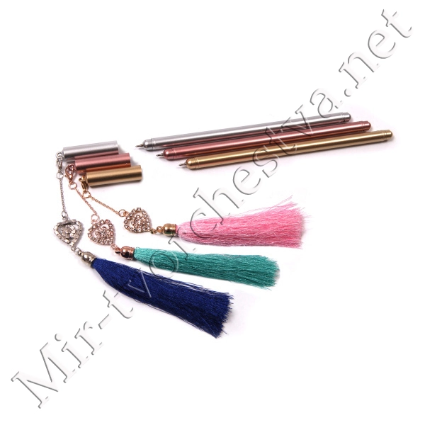 Ручка шариковая с подвесом 0,7мм, Бахрома с сердцем, AR-1701-14