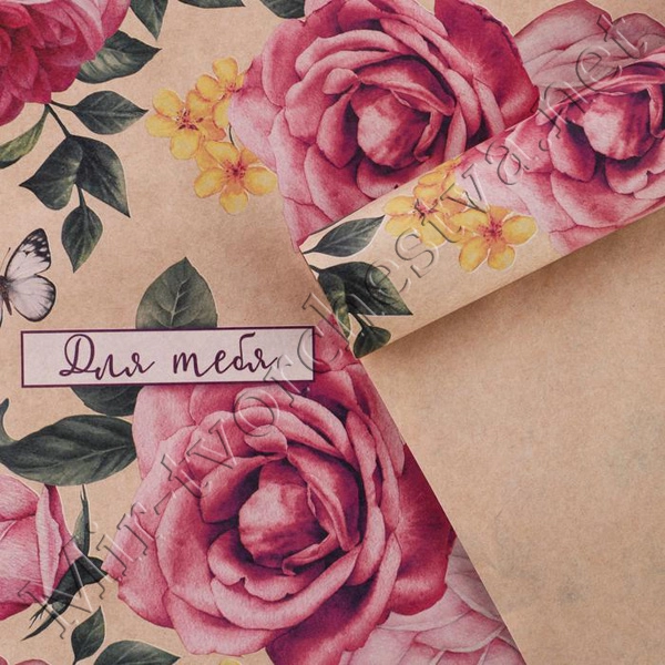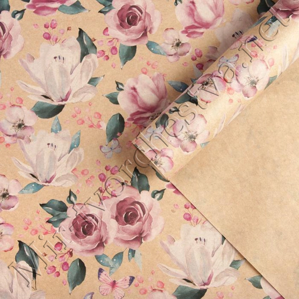 Бумага упаковочная крафтовая, 50x70см, «Акварельные пионы»