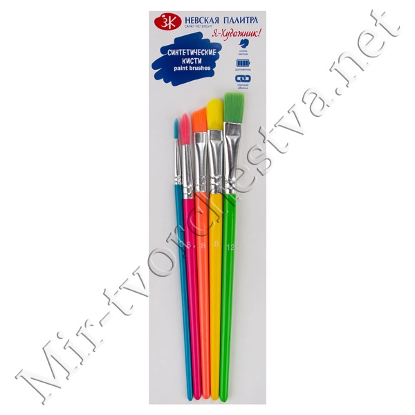 Набор кистей синтетика (цветные) 5шт., нейлон, Я-Художник!